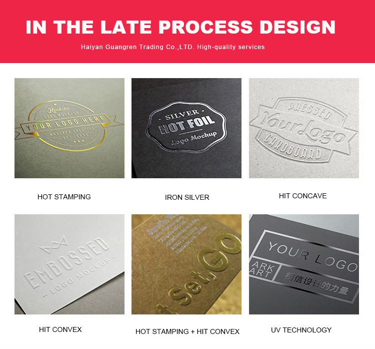 The standard is 350g artpaper with 4C printing. Other materials and printing process are acceptable at your request. Material:157g, 2500g hadcover, leather, PVC etc. Printing process: Embossing & Embossing&Engraving, UV, hot stamping, spot color printing,double-sided printing, etc.