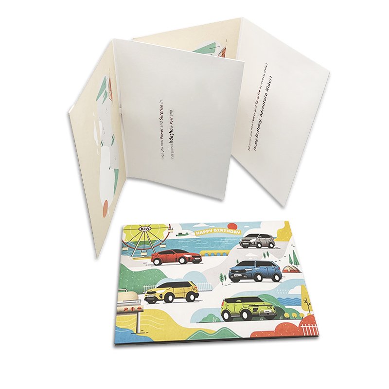 The standard is 350g artpaper with 4C printing. Other materials and printing process are acceptable at your request. Material:157g, 2500g hadcover, leather, PVC etc. Printing process: Embossing & Embossing&Engraving, UV, hot stamping, spot color printing,double-sided printing, etc.
